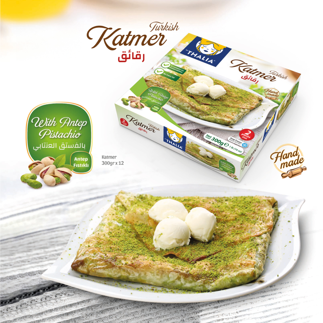 Dondurulmuş katmer, çıtır çıtır hamuru ve nefis iç harcıyla kahvaltılarınızın ve çay saatlerinizin vazgeçilmezi olacaktır.